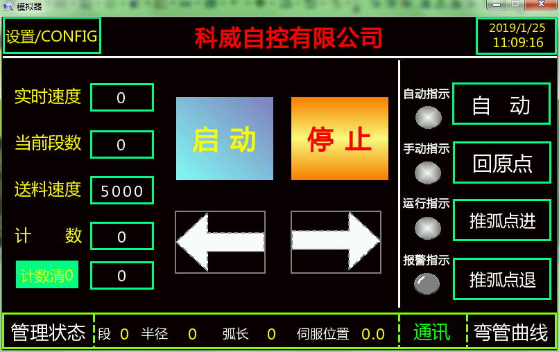 本系統采用科威智能伺服控制,針對目前市場上系統存在的問題,將系統方案升級改進,全新的彎弧機系統可以實現推弧輥與壓弧輥同步聯動,不再受限于速度;彎弧一致性好,可以做到弧連弧無縫銜接、弧段數無限段、精確控制每段過渡弧長、弧型調試有理論公式可循;支持CAD坐標導入,有XY實時曲線調試。